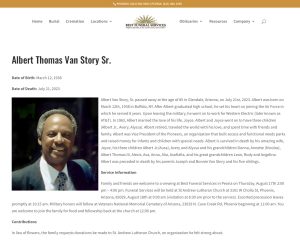 Albert Van Story, Sr. passed away at the age of 85 in Glendale, Arizona, on July 21st, 2023.